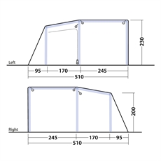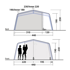 Virginia 5 Air TC sticker ut med sin ögonfallande, moderna design. Gå in genom huvuddörren eller den täckta sidverandan för flexibel åtkomst. Den invändiga tvåpersoners sovkabinen kan helt förpackas bort för att öppna upp för större vistelseutrymme eller låta stå, så man kan njuta av utsikten ut genom verandan. Den inbyggda, justerbara LED belysningen i vistelserummet kommer från det integrerade, patentansökta Outwell Light System, som är perfekt för mysbelysning till lite kraftigare ljus, ska bara kopplas till en vanlig powerbank eller strömkälla via USB uttaget (strömkälla medföljer inte). Tack vare den fyrkantiga formen finns nästan lodräta sidoväggar och generös takhöjd och golvyta, vilket är idealiskt när man är många.