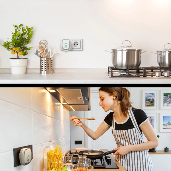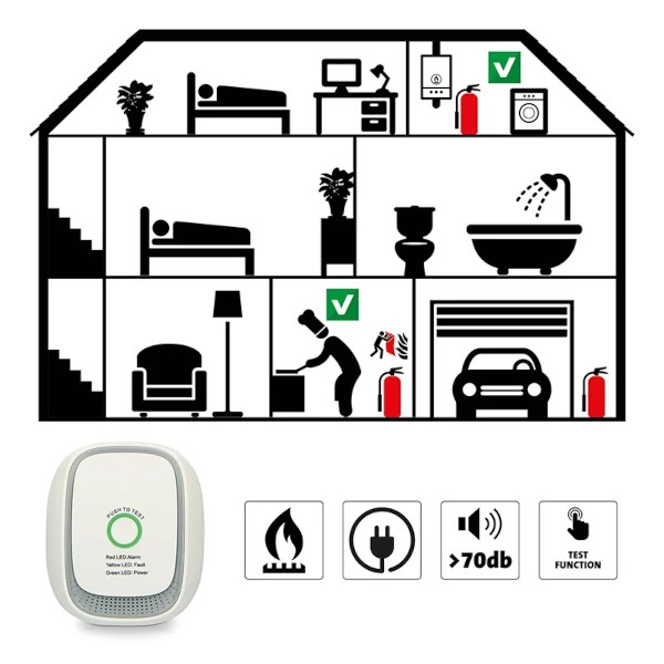 Gasdetektorn kan kopplas direkt i uttaget och den är utrustad med en testknapp.