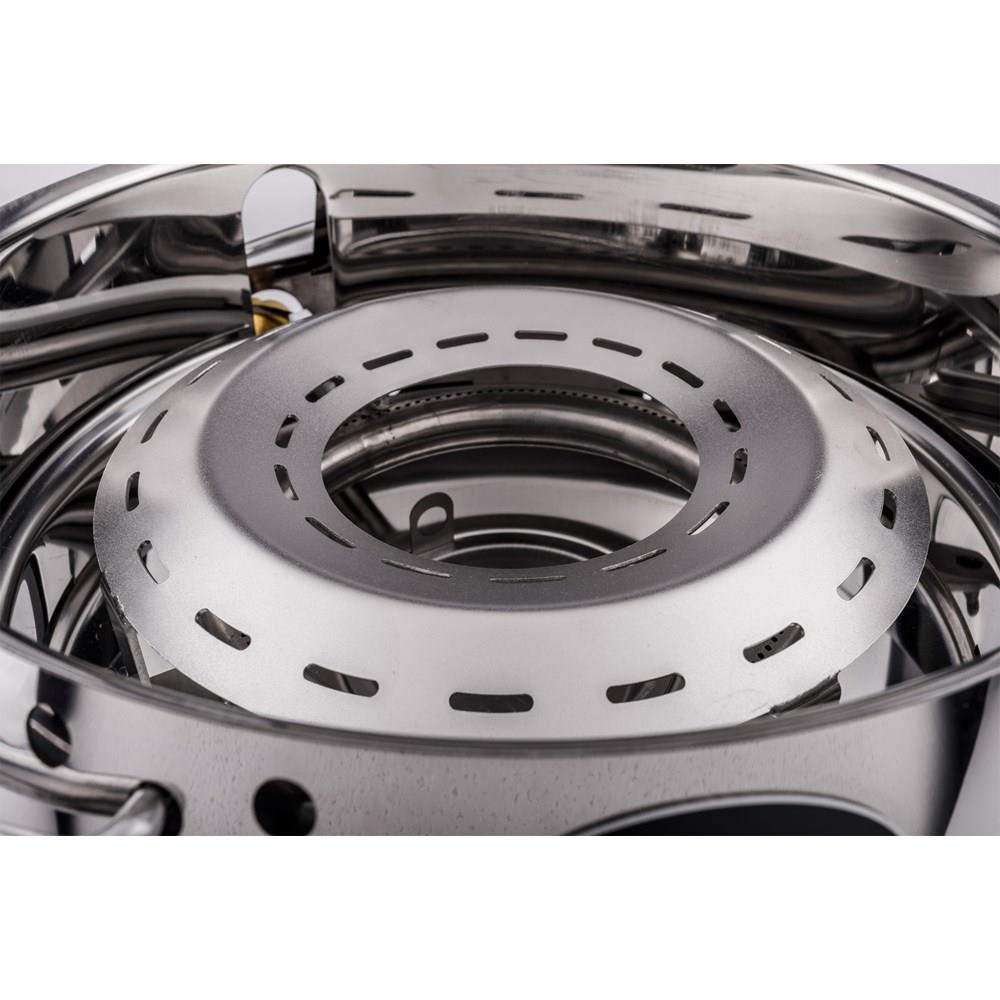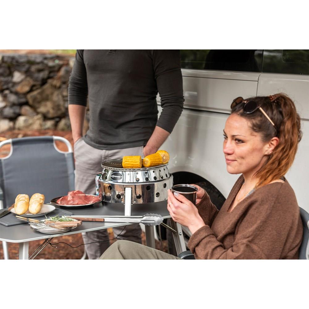 Den kompakta gasgrillen mäter 19 x 35,6 x 34 cm ihopfälld och väger endast 3,625 kg, vilket gör den idealisk för mobila campingäventyr. Grillgallret har en diameter på 28 cm och är tillverkat i hållbart rostfritt stål. Med Petromas kvalitets gasbrännare med en värmeeffekt på 3,8 kW får du snabb och effektiv uppvärmning med exakt värmekontroll.