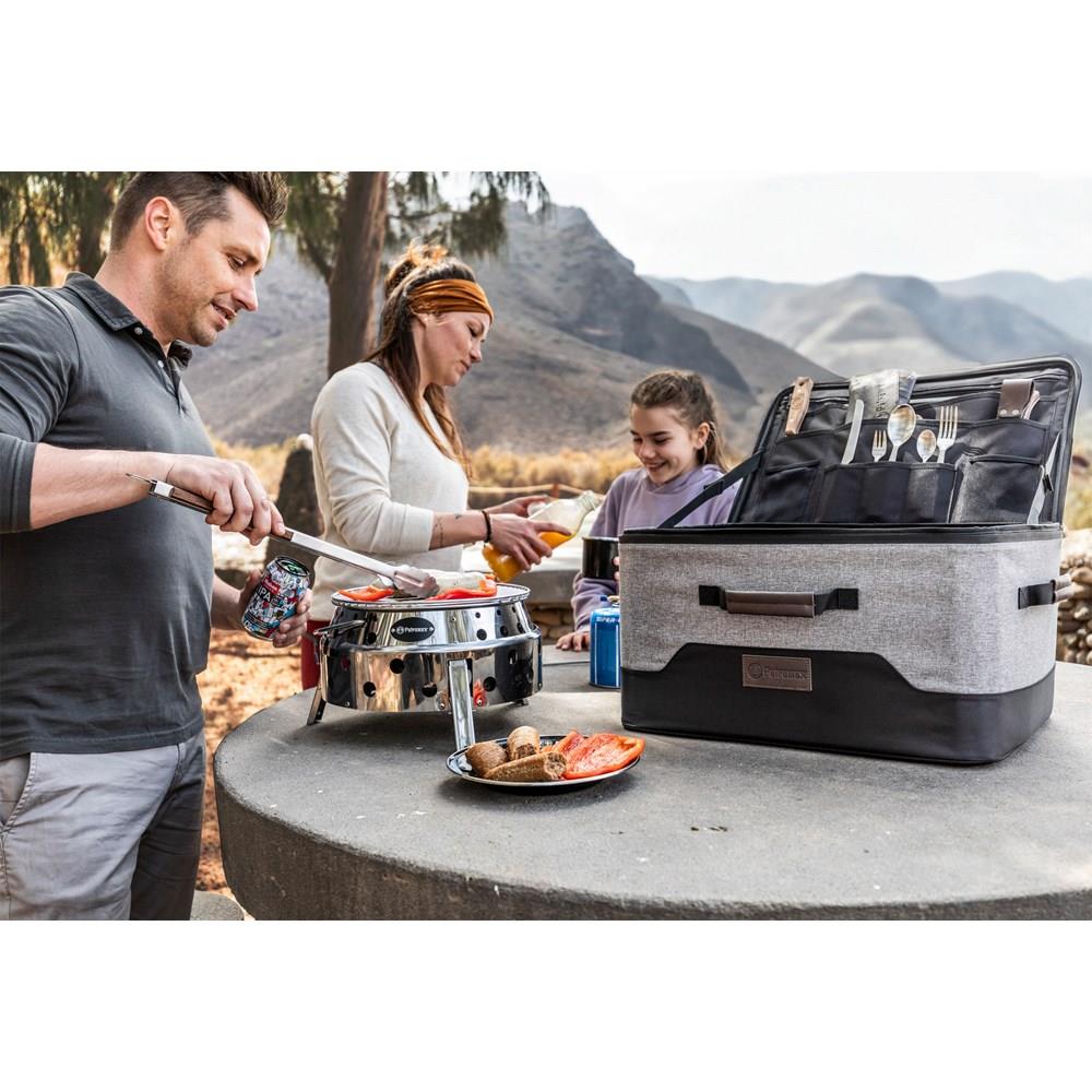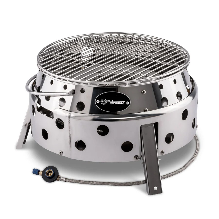 Ta med dig glädjen av grillning överallt med denna kompakta gasgrill från Petromax. Det genomtänkta ihopfällbara systemet gör det enkelt att ha med sig gasgrillen överallt, samt snabb uppsättning av grillen i ett enda steg - idealiskt när du ska grilla på stranden eller i skogen. Med piezotändning kommer du snabbt igång, även i blåsigt väder, utan behov av tändare. Den robusta konstruktionen i rostfritt stål säkerställer hållbarhet vid utomhusbruk under lång tid, medan den rymliga grillytan på 600 cm² ger plats att tillaga mat till flera personer samtidigt. Grillgallret med dubbel kant ger extra säkerhet för att din mat inte ska rulla av när du grillar på ojämn terräng. Det standard gaspatronsystemet med propan/butan-blandning gör det enkelt och säkert att hantera bränslet.