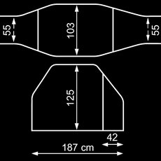 Mått: L: 187 x B: 55/103 x H: 125 cm.