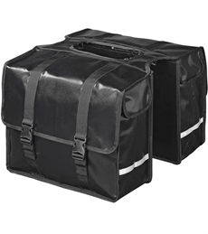 Denna rymliga cykelväska ger dig 40 liters förvaringsutrymme uppdelat på de två sidoväskorna. Det vattentäta presenningsmaterialet håller dina tillhörigheter torra i alla väderförhållanden, medan reflexbanden ökar din synlighet i trafiken. Väskan monteras enkelt på pakethållaren med justerbara remmar och kardborreband.