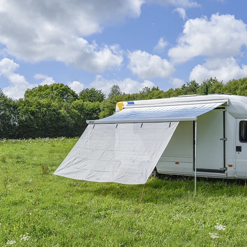 Detta frontstycke passar från 7-9 mm skena och säkerställer problemfri montering på din markis. Det robusta och vattentäta nätmaterialet ger effektivt skydd mot både sol, lätt vind och samtidigt med lätt genomskinlighet skapar det ett behagligt mikroklimat under markisen vid husbilen eller husvagnen. Med en vikt på endast 4,7 kg är det lätt att hantera och transportera.