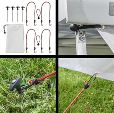 Inkluderat: Pinnar, linor, krokar och förvaringspåse