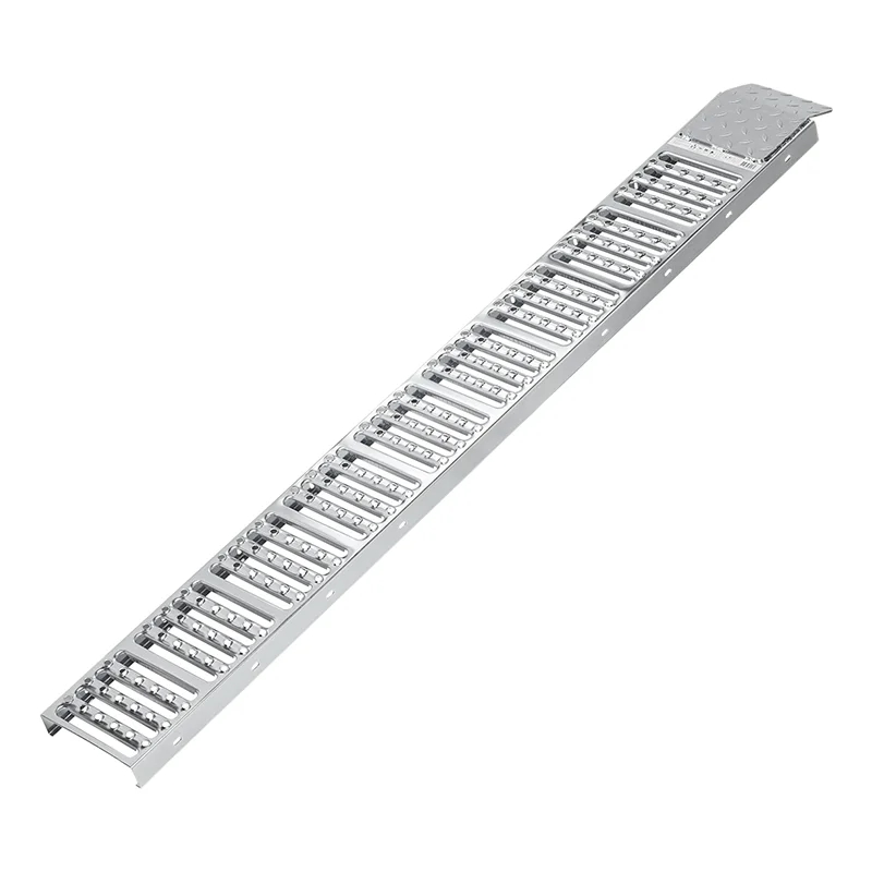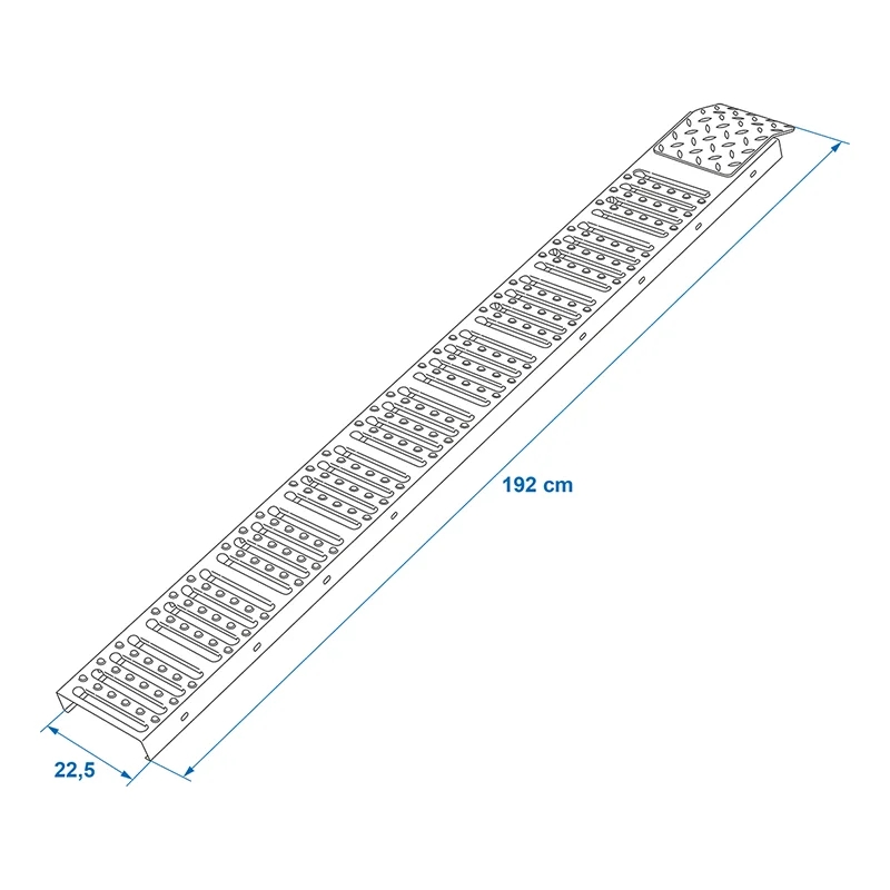 Denna stålramp har en kapacitet på upp till 225 kg per styck, vilket ger dig säkerhet när du lastar gräsklippare och mindre motorer in och ut ur garage eller skåpbilar. Den perforerade ytan säkerställer bättre grepp vid lastning, även under våta förhållanden. Med mått på 180 x 26 cm passar rampen till de flesta fordon och ger en lämplig lutning upp till 480 mm höjd.