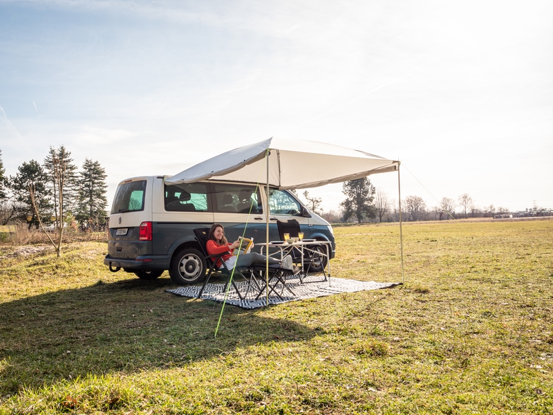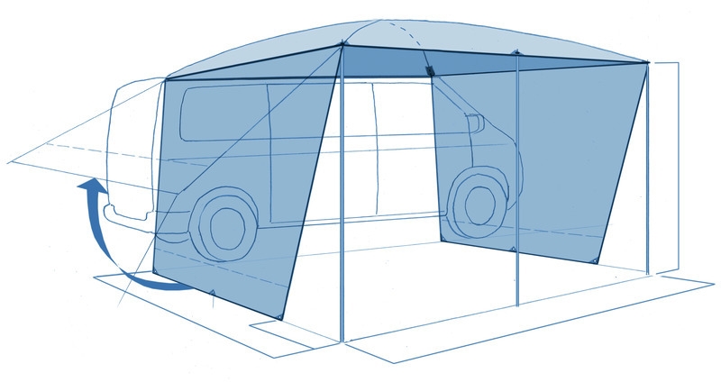 Leveransomfång: Markis med 2 sidoväggar, monteringsstänger, linor, pluggar samt förvaringsbag.
