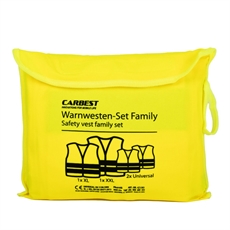 Setet består av, 1 Vuxen XXL, 1 Vuxen XL och 2 universalvästar för barn, samt en förvaringsväska