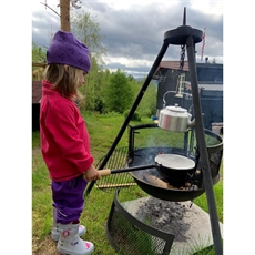 Denna robusta kaffekanna i aluminium är skapad för friluftsliv. Med det specialdesignade handtaget kan du enkelt hänga den över elden, vilket gör den idealisk för matlagning och kaffebryggning utomhus.