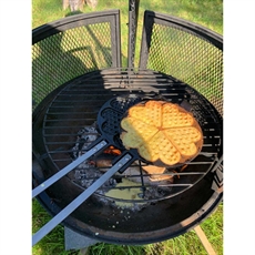 Detta gjutjärnsvåffeljärn håller effektivt kvar värmen, så du kan grädda flera våfflor i rad utan att behöva återuppvärma järnet. Med det 68 cm långa handtaget i stål och trä kan du tryggt göra våfflor över elden.
