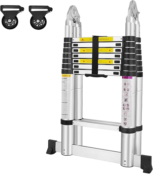 Den här teleskopstegen når 3,2 meter i utfällt tillstånd och ger dig tillgång till din husvagn, camper eller kanske din lift. Stegen är gummibelagda och halkfria, så du står stabilt, oavsett om du använder stegen inomhus eller utomhus. Fingersäkerhetsmekanismer skyddar dina händer vid hopfällning, medan det stötdämpande bandet mellan stegen erbjuder extra skydd. Tillverkad i aluminiumlegering är stegen lätt att transportera och motståndskraftig mot rost.