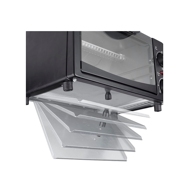 Grillgaller och bakplåt medföljer för olika matlagningsmetoder, medan över- och undervärmeelement i rostfritt stål säkerställer exakt värmefördelning. Den justerbara temperaturen från 100 till 230 °C ger dig möjlighet för både skonsam uppvärmning och intensiv bakning. Handtaget gör det möjligt att hantera de varma tillbehören säkert.