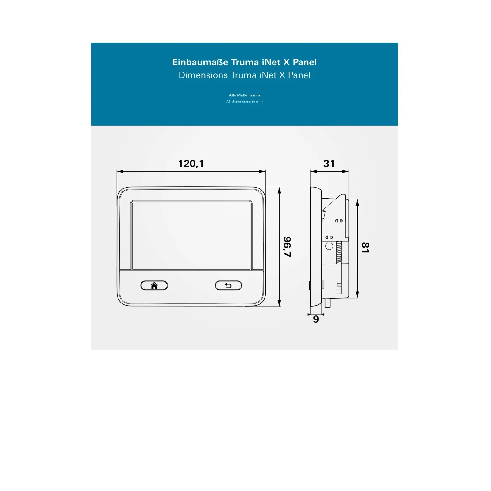 • iNet X Panel: 96,7 x 120,1 x 31 mm, ca 150 g