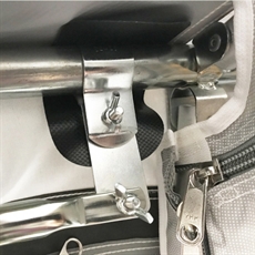 Front och sidodelar: Nerfällbara och avtagbara med blixtlås.