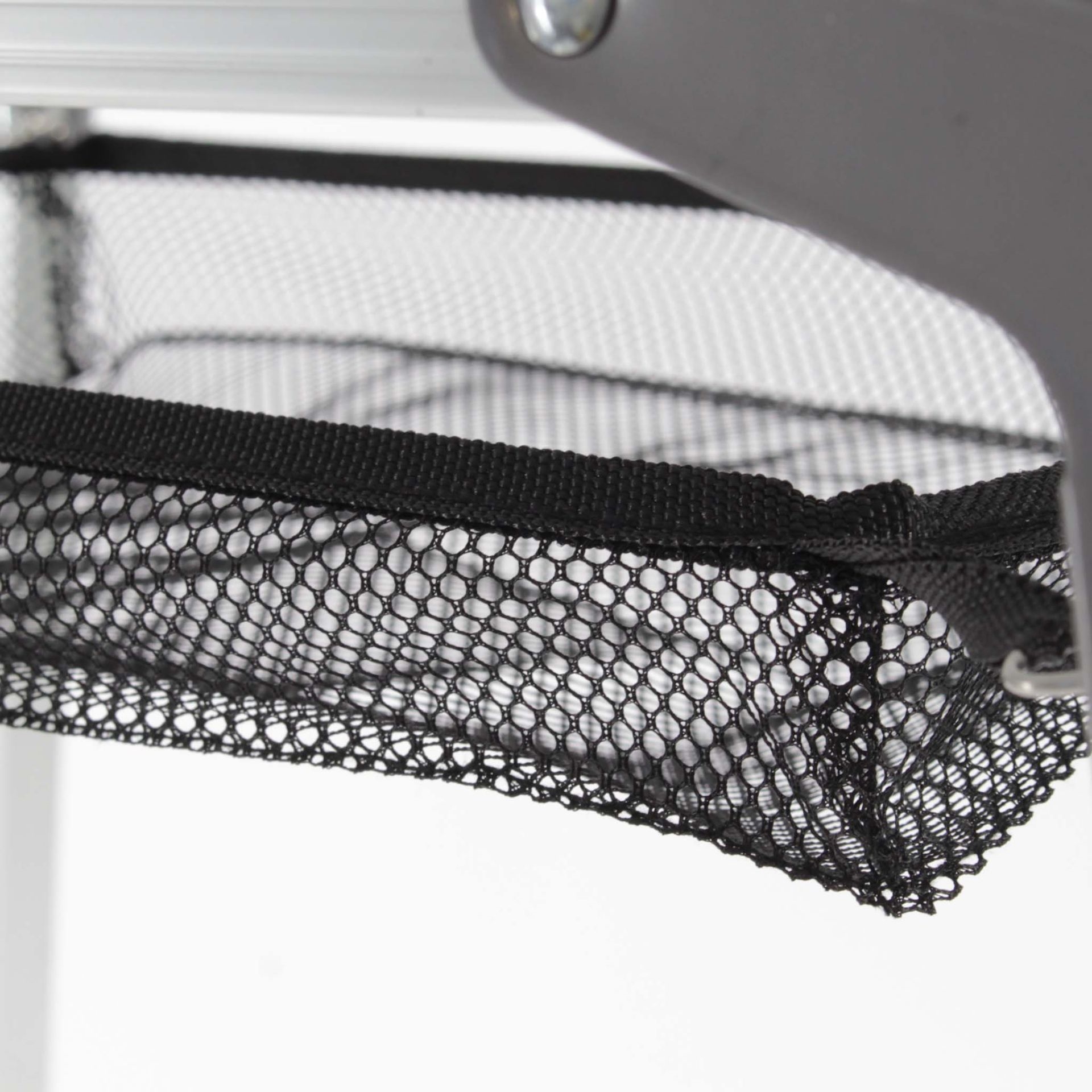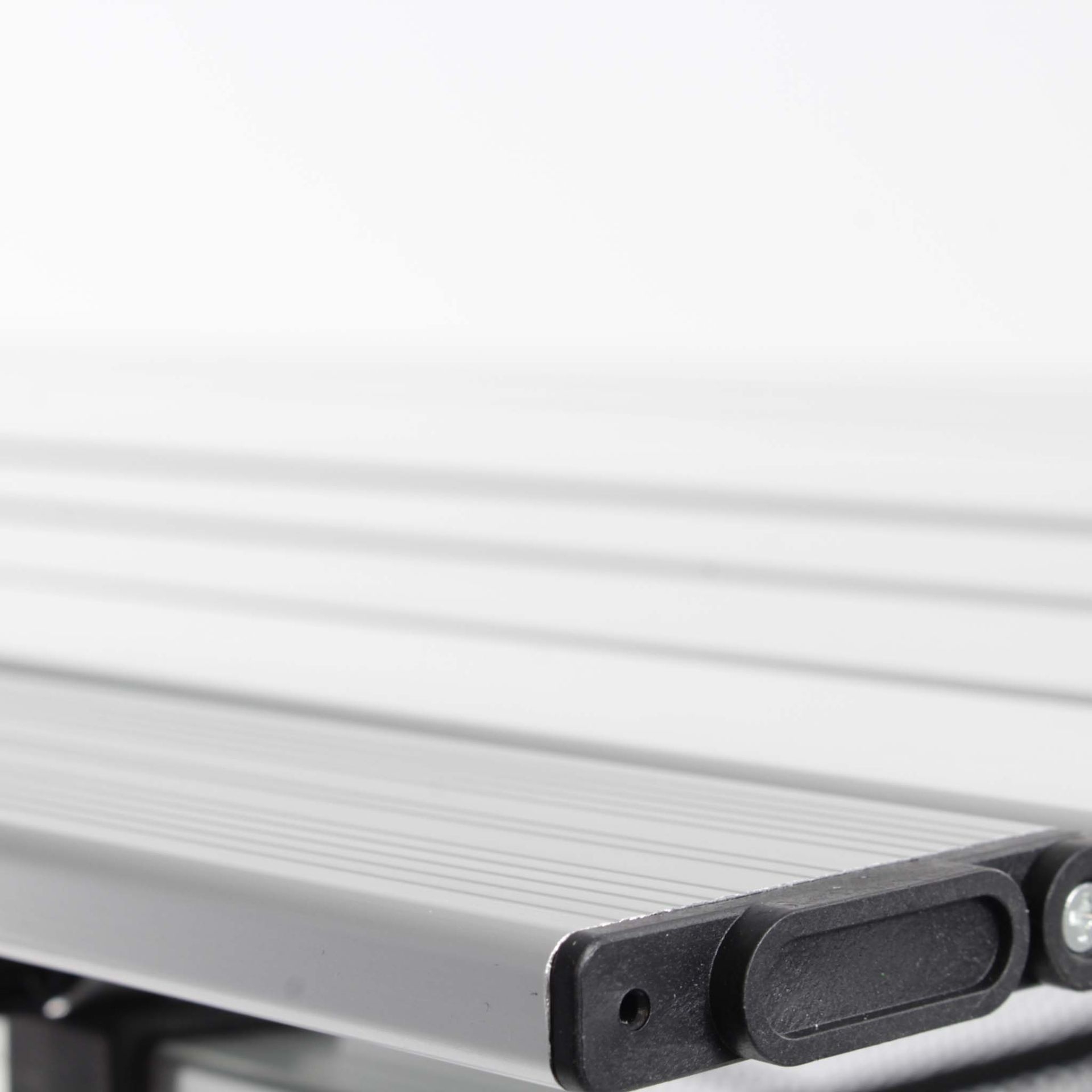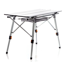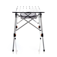 Detta hopfällbara campingbord gör transport och förvaring lätt för dina tältutflykter och längre utomhusexpeditioner. Med steglös höjdjustering från 45 cm till 65 cm får du flexibilitet för olika aktiviteter som matlagning och måltider. Bordsskivan på 90 x 53 cm i aluminium ger tillräckligt med utrymme för 2-4 personer, medan den medföljande bärväskan gör det enkelt att bära över längre avstånd till stranden eller parken.