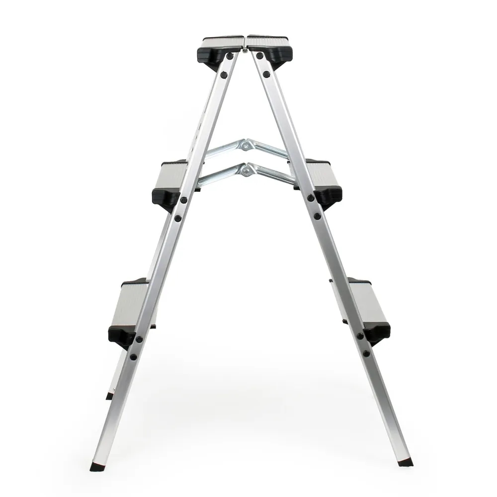 Om du behöver utföra inomhusunderhåll eller utomhusfasadarbete är denna stege konstruerad med säkerhet som prioritet. Fotstegen har räfflor som förhindrar halkning, även när du arbetar under fuktiga förhållanden. Gummitopparna på stegens fötter säkerställer stabilitet på olika underlag, så du kan koncentrera dig på uppgiften utan att oroa dig för att stegen ska glida. Med en maximal belastning på 150 kg kan stegen bära både dig och din utrustning. Tillverkad av aluminium är den lätt att transportera och motståndskraftig mot korrosion vid utomhusbruk.