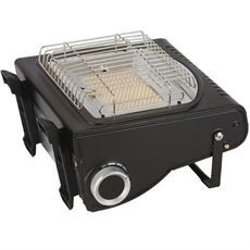 Denna mångsidiga 2-i-1 lösning kombinerar en effektiv gasvärmare och kök med 1,7 kW effekt. Idealisk för husvagnen, där säkerhetsventilen och skyddsgallret gör det tryggt att använda i tätare omgivningar. Den robusta konstruktionen och piezo-tändningen säkerställer pålitlig drift under skiftande väderförhållanden.